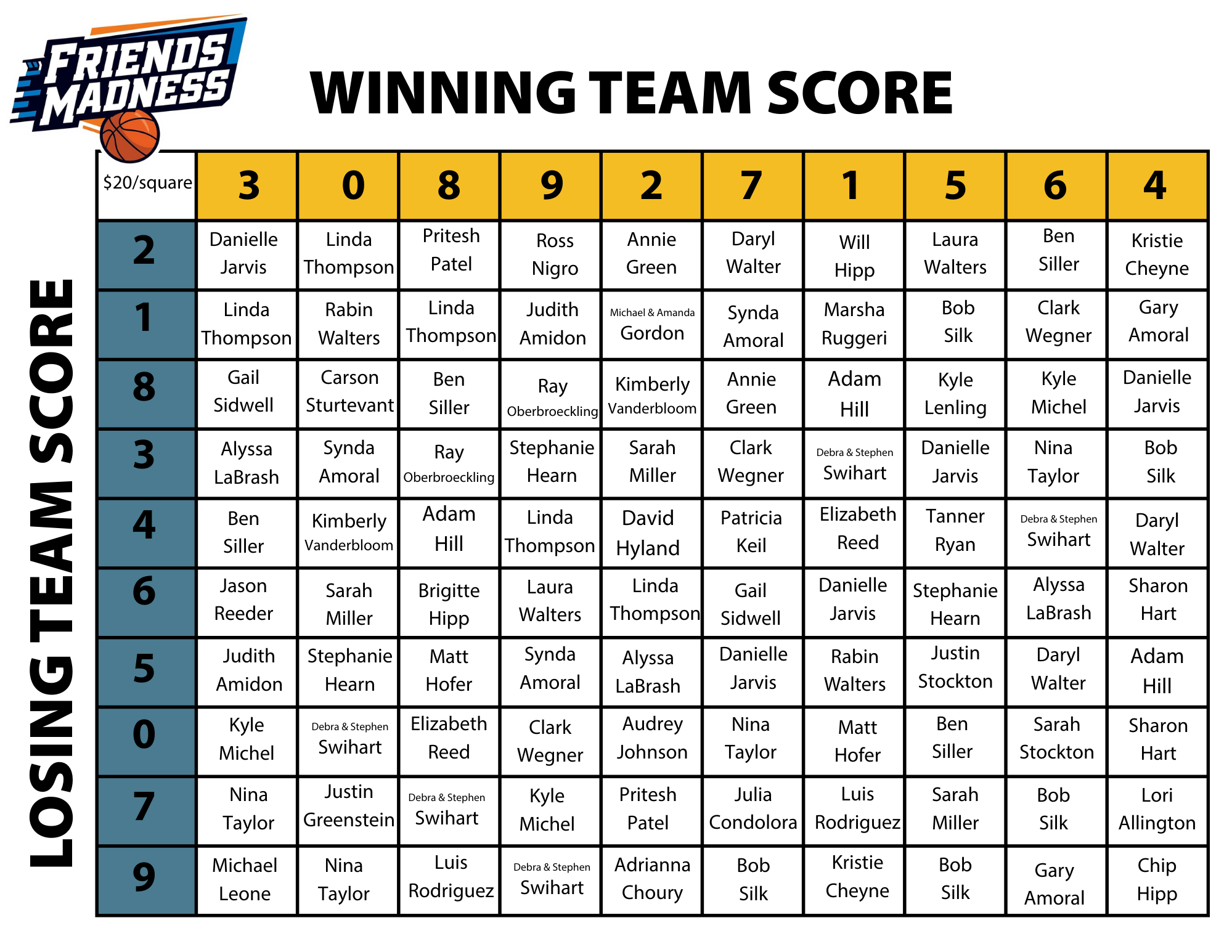 Join the March Madness fun while supporting inclusive programs at FRIENDS! FRIENDS Madness is a luck-based March Madness Squares fundraiser planned and led by the FRIENDS Participant Action Committee, empowering participants to take an active role in fundraising and leadership.