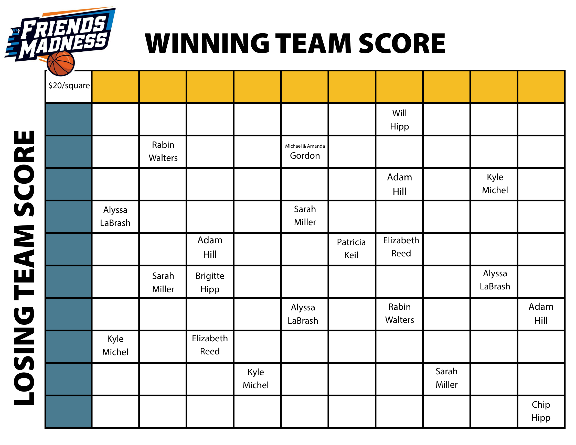When the grid is full or the tournament tips off on March 19 (whichever comes first), numbers are randomly drawn across the top and side of the grid